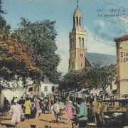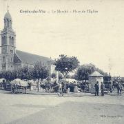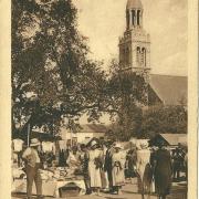Croix-de-Vie, la place de l'église, un jour de marché.