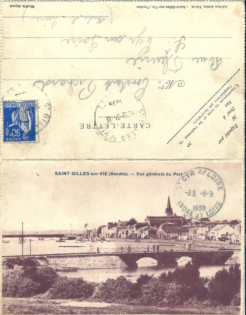 Carte-lettre, collection Autin, écrite 1939.