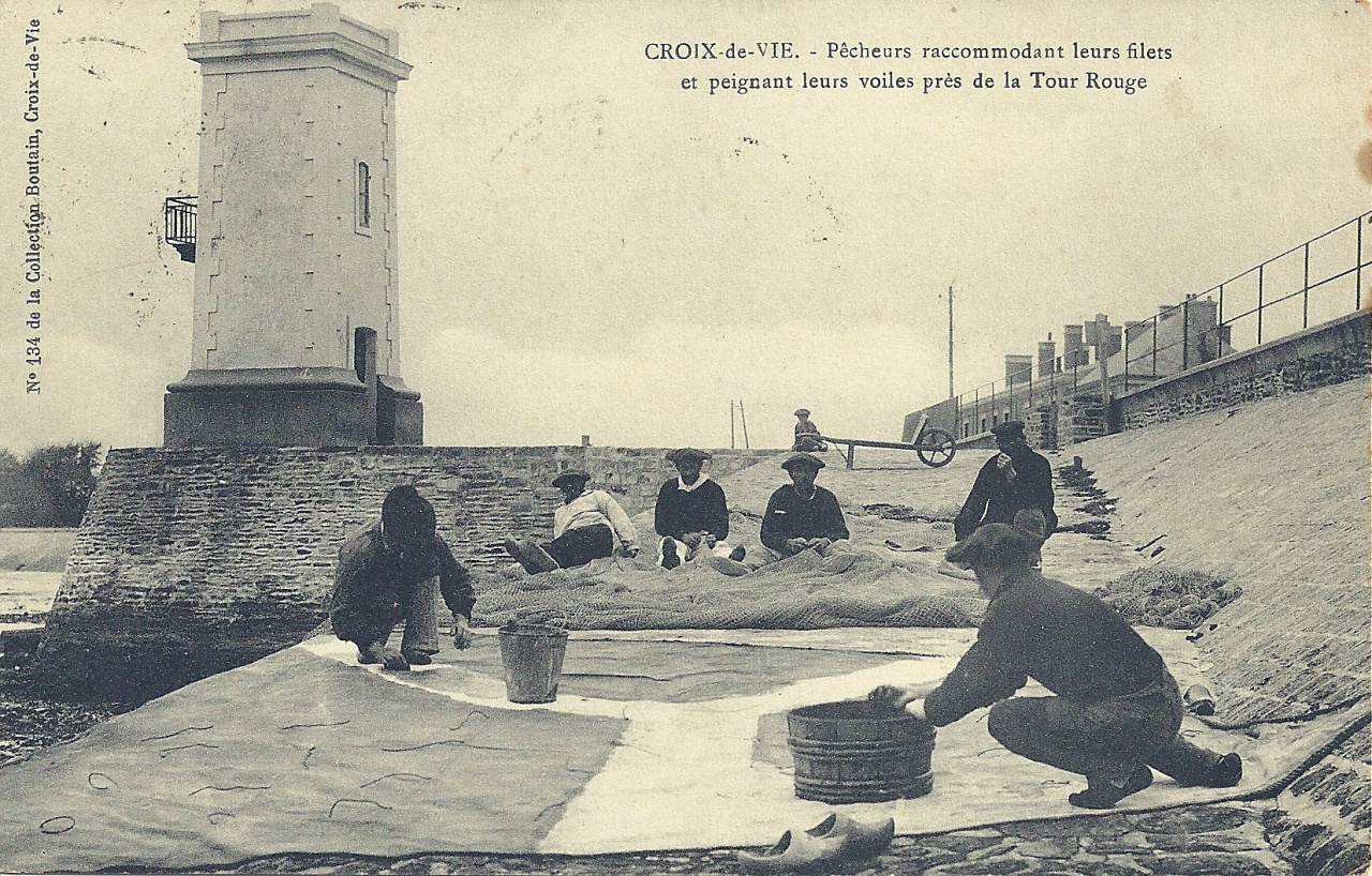 Croix-de-Vie, pêcheurs peignant leurs voiles.