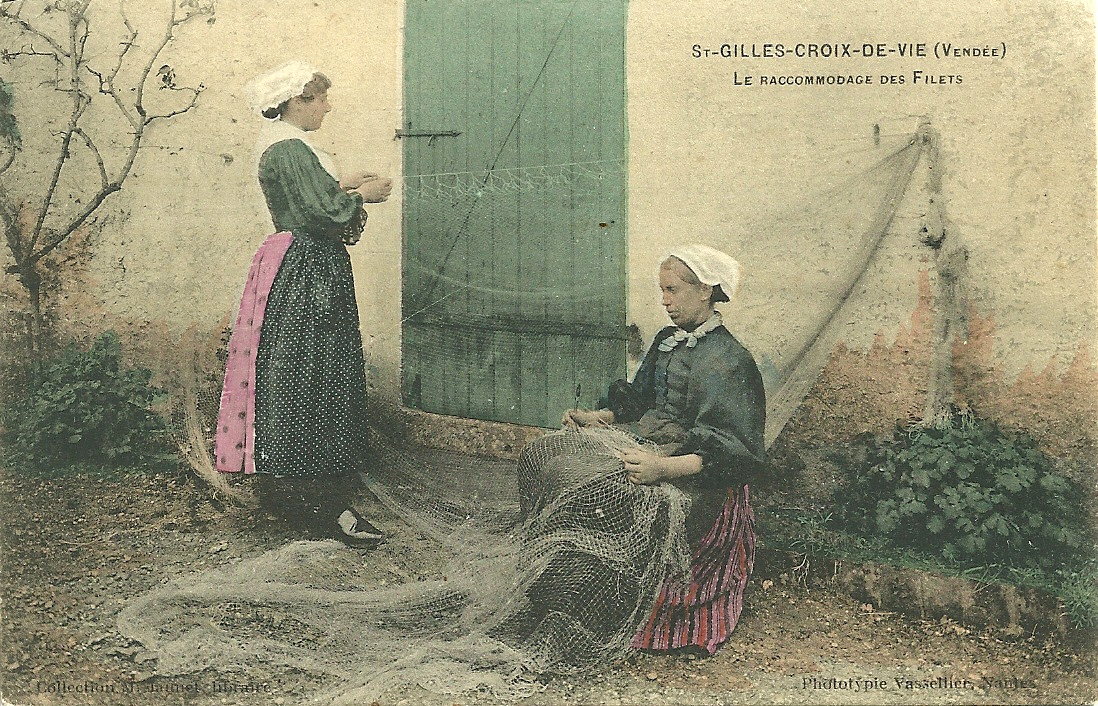 St-Gilles-Croix-de-Vie, le raccommodage des filets.