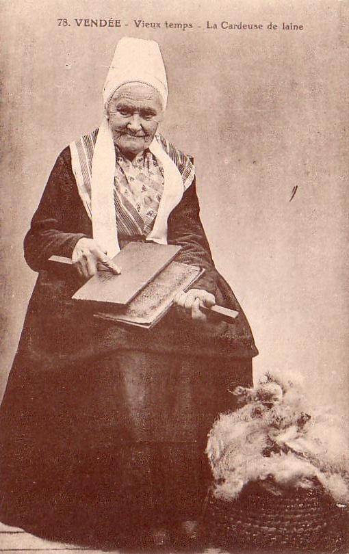 Vendée, vieux temps, la cardeuse de laine.